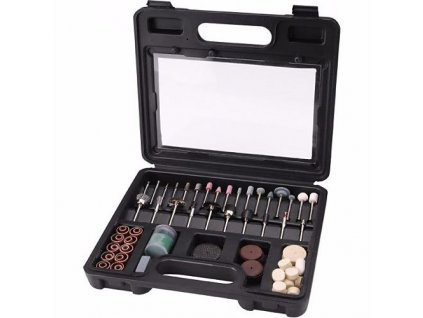 36-dielna sada, stopka pr. 3,2mm, 4x brúsny kameň so stopkou, stopka na brúsne kamene, 2x brúsny kameň, 18x brúsny papier, stopka na cylindrický brúsny papier, 10x cylindrický brúsny papier
