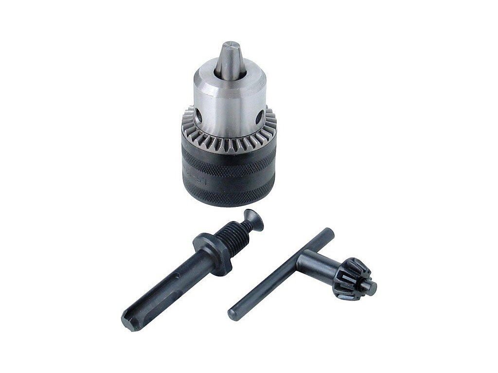 Trojčeľusťové skľučovadlo do priemeru 13 mm so závitom 1/2" s upínaním na kľúč. Ďalej je obsahom balenia redukcia so závitom pre pripojenie skľučovadla a stopkou na upínanie do hlavice so systémom SDS plus.