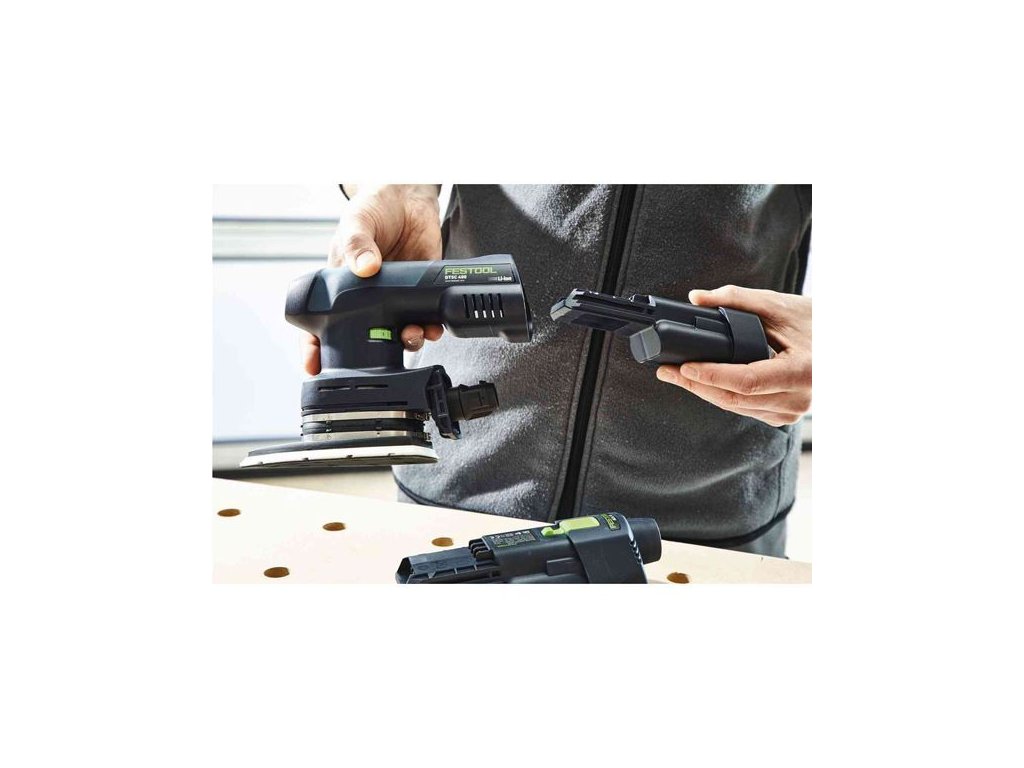 Špeciálne vyvinuté pre akumulátorové brúsky ETSC, DTSC, RTSC: ľahký, príručný akumulátor Ergo sa postará o úplnú voľnosť pohybu a maximálny komfort pri brúsení. O vytrvalosť ako zo zásuvky sa postará dokonalá súhra akumulátora a motora EC-TEC a tým sa dosiahnu dlhšie doby chodu, ako doby nabíjania. S vybavením technológiou Bluetooth® pri zapnutí akumulátorového náradia automaticky spustí prepojený mobilný vysávač – a v kombinácii s aplikáciou Festool Work poskytuje podrobné informácie o stave nabitia, prevádzkových údajoch ako je napr. teplota alebo nabíjacie cykly. A samozrejme je kompletne zabezpečený so službou Festool Service.