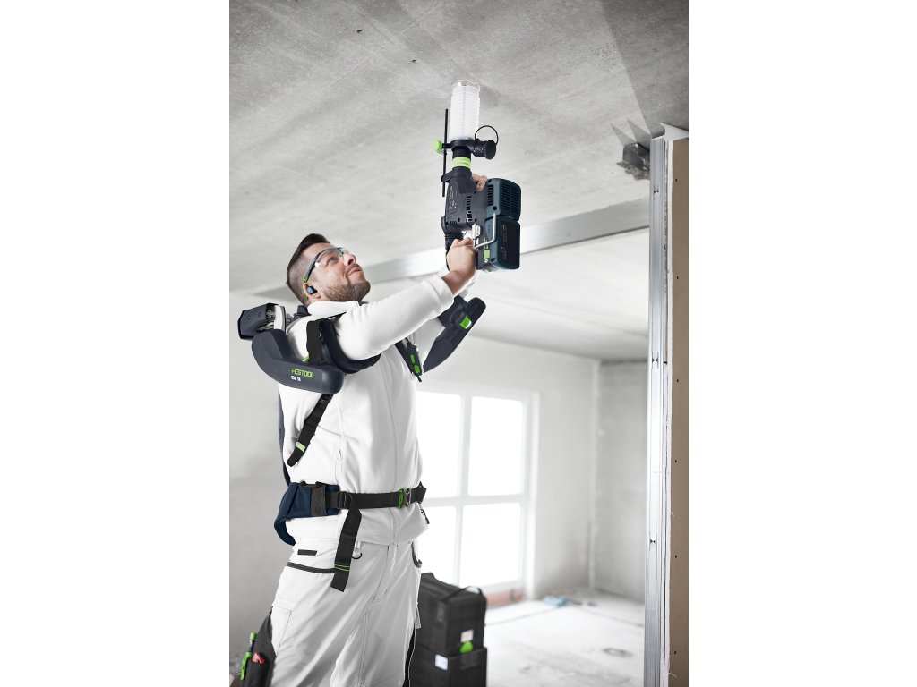 - 18 V akumulátory s Bluetooth®: 5,0 Ah akumulátory s Bluetooth®, ktoré sú súčasťou rozsahu dodávky, sú kompatibilné so všetkým náradím a nabíjačkami portfólia Festool 18V. Možno ich vynikajúco kombinovať s diaľkovým zapínaním vysávača – ak sa zapne náradie, zapne sa aj vysávač