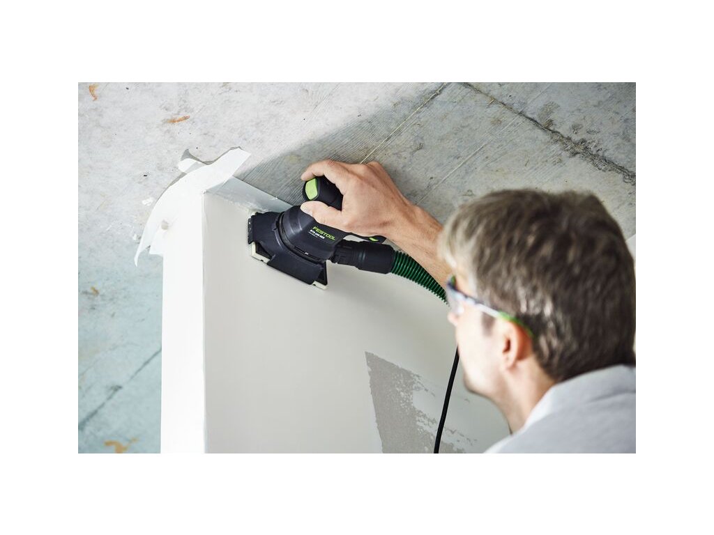 - Zdravo a menej dodatočných úprav: podľa výberu v bezprašnej kombinácii s mobilným vysávačom alebo vreckom na zachytávanie prachu Longlife a nasaditeľnou ochranou PROTECTOR pre šetrné brúsenie pozdĺž okenných plôch, rámov a výplní