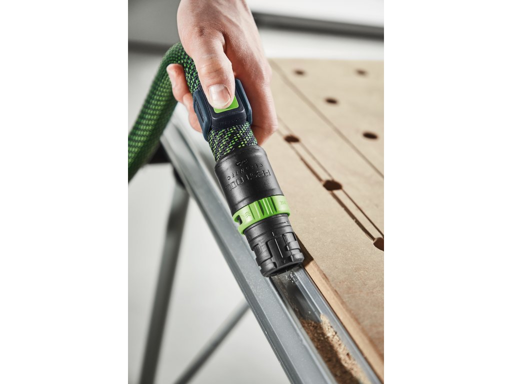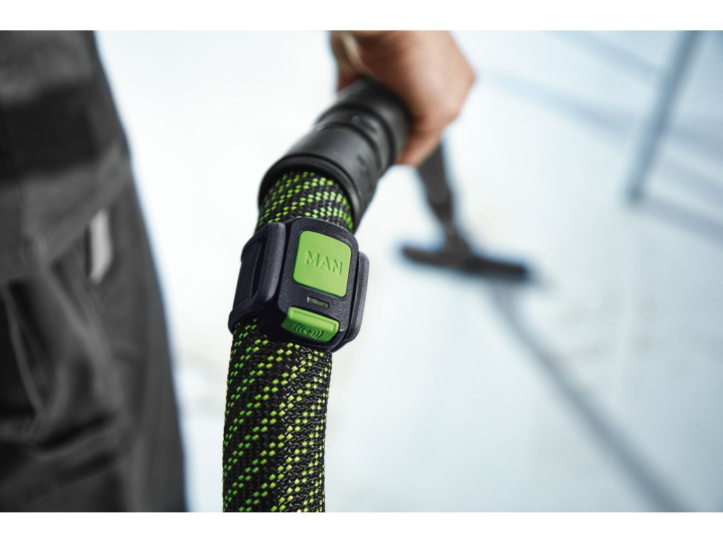 Kombinácia modulu Bluetooth® na mobilnom vysávači CLEANTEC a diaľkovom ovládaní vám ušetrí cestu k vysávaču: nasávanie jednoducho spustíte priamo na hadici pomocou diaľkového ovládania. Ideálne na krátke priebežné opracovanie – jednoduché prepnutie do režimu čistenia, aj keď sa mobilný vysávač nachádza v režime AUTO. Modul Bluetooh na mobilnom vysávači komunikuje nielen s novým diaľkovým ovládaním, ale aj s akumulátorovou súpravou Bluetooth® Festool. Tá zabezpečí, že sa pri zapnutí mobilného vysávača automaticky spustí aj akumulátorové náradie. Tak môžete pri práci s akumulátorovými nástrojmi Festool využívať výhody celého bezprachového systému Festool.
