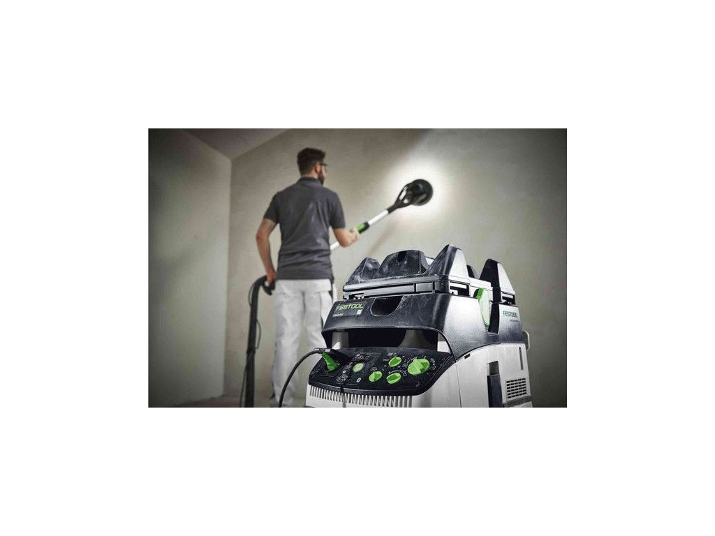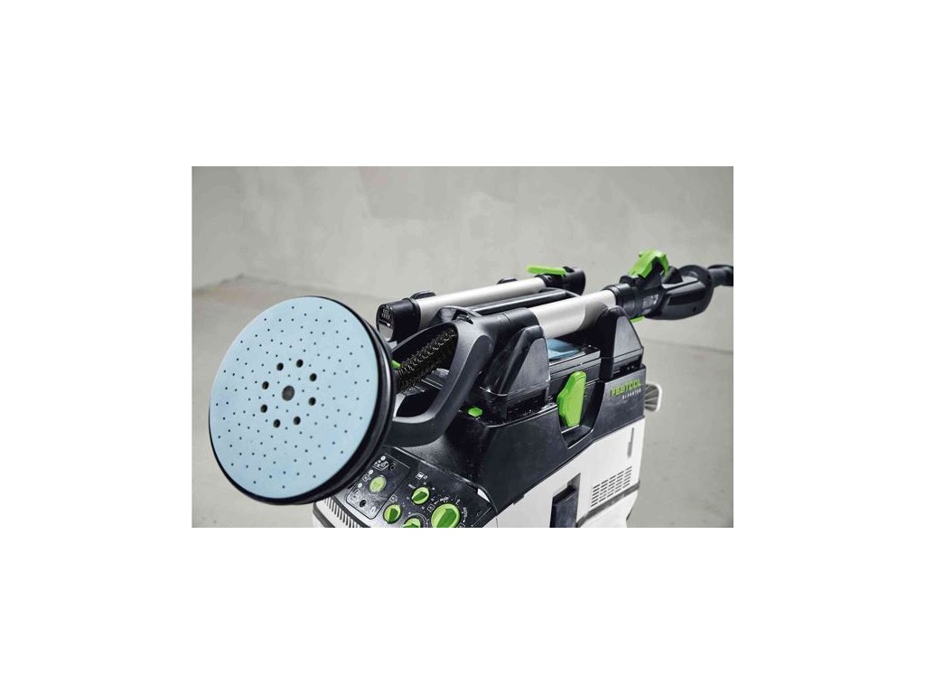 Držiak náradia pre brúsku PLANEX umožňuje jednoduché odloženie brúsky PLANEX na vysávač počas prestávok, nastavovania alebo prepravy vďaka stabilnej rukoväti.
