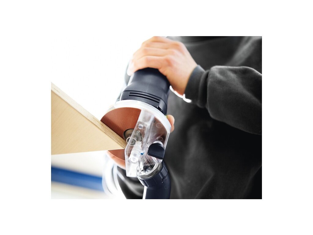 Zrážanie hrán, zaobľovanie, profilovanie a drážkovanie – všetko rovnomerne, čisto a bez triesok s hranovou frézou OFK 500. Váži len 1,4 kg a vďaka ideálne umiestnenému ťažisku je výnimočne praktická na vertikálne aj horizontálne použitie. Výnimočný na tomto náradí je jeho systém frézovania: všetky nástroje hranovej frézy majú rovnaký vonkajší priemer. Tak bol otvor stola na fréze zmenšený na minimum, čo bráni preklopeniu frézy na problematických miestach na rohoch.