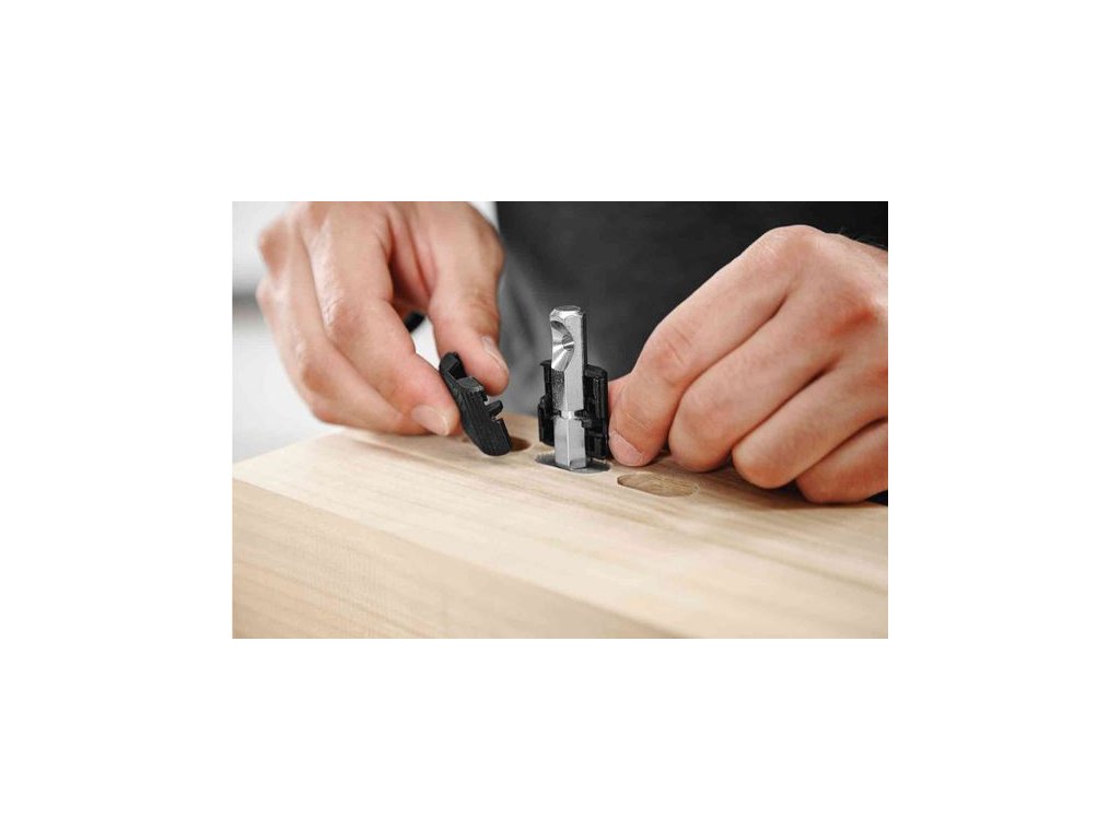 - Systém rohových a plošných spojok pre kolíkovaciu frézku DOMINO XL DF 700 umožňuje stabilné, znova rozpojiteľné spojenia materiálu od hrúbky 30 mm