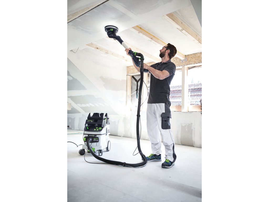 Silný, výkonný, robustný. Pri náročnom brúsení zabezpečuje v porovnaní s predchodcom efektívnejšie čistenie hlavného filtra AUTOCLEAN pre konštantne vysoký sací výkon, dlhšie pracovné intervaly a dlhšiu životnosť filtra pri menších nárokoch na údržbu. S objemom nádoby 36 l je CTL 36 EI AC-PLANEX dimenzovaný na veľký úber materiálu brúskou s dlhým krkom PLANEX. Dotykové ovládanie umožňuje intuitívnu obsluhu tvojho vysávača. Zabudované Bluetooth® rozhranie umožňuje automatické zapínanie alebo spojenie s aplikáciou Festool, pomocou ktorej môžeš napr. ovládať intervaly čistenia. Pružnú saciu hadicu, odolnú proti zalomeniu, možno prakticky uložiť do zabudovaného držiaka hadice.
