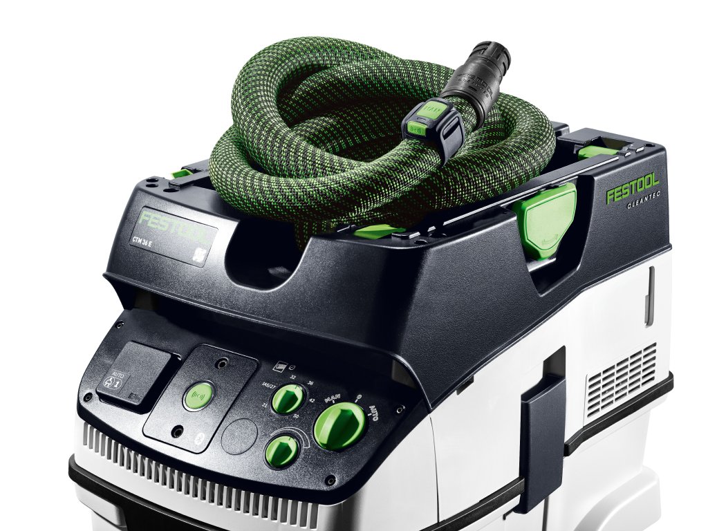 Kombinácia modulu Bluetooth® na vašom mobilnom vysávači CLEANTEC a diaľkového ovládača na sacej hadici šetrí cestu k vysávaču: Odsávanie spustíte jednoducho priamo na hadici diaľkovým ovládaním. Ideálne na krátke upratovanie medzi jednotlivými prácami – jednoducho prepnite na režim čistenia, aj keď je mobilný vysávač v režime AUTO. Modul Bluetooth® na mobilnom vysávači však nekomunikuje iba s diaľkovým ovládaním – ale aj s akumulátormi Festool Bluetooth®. Tie sa starajú o to, aby sa mobilný vysávač automaticky spustil po zapnutí akumulátorového náradia. Takto budete profitovať z kompletného bezprašného systému Festool aj pri akumulátorových produktoch Festool.
