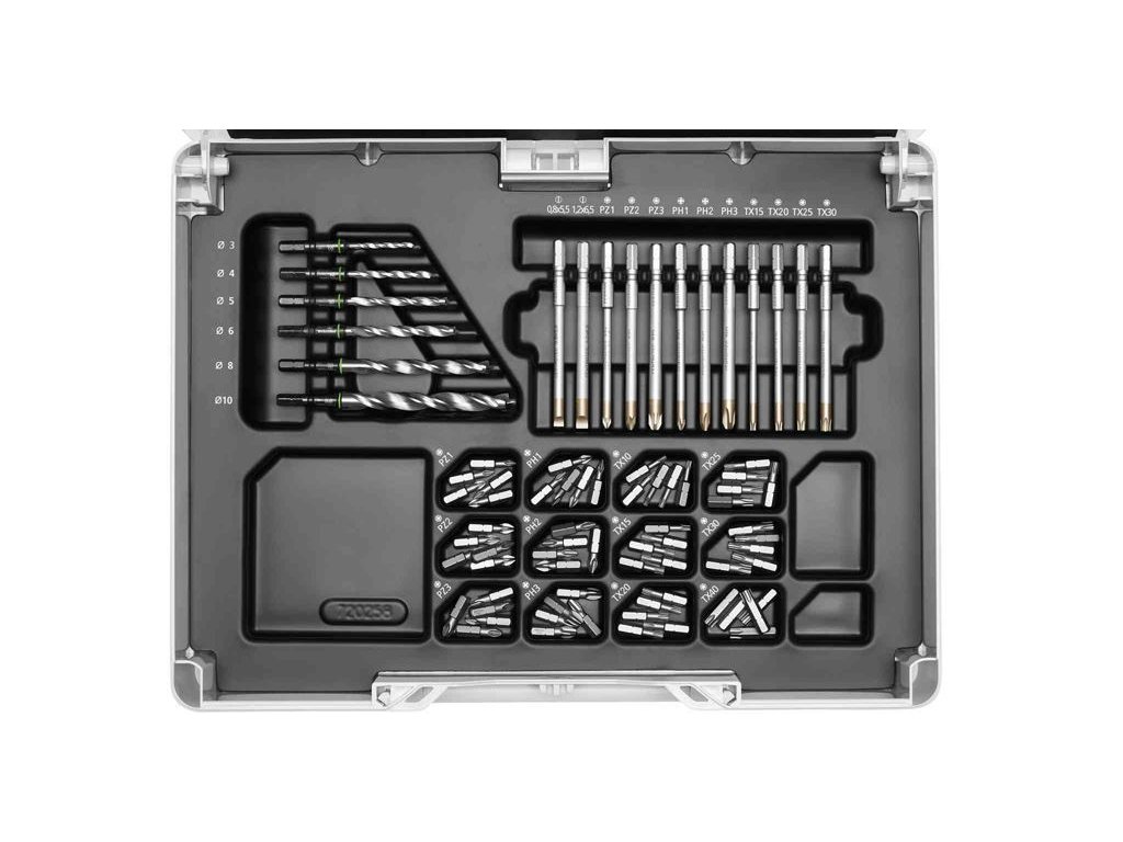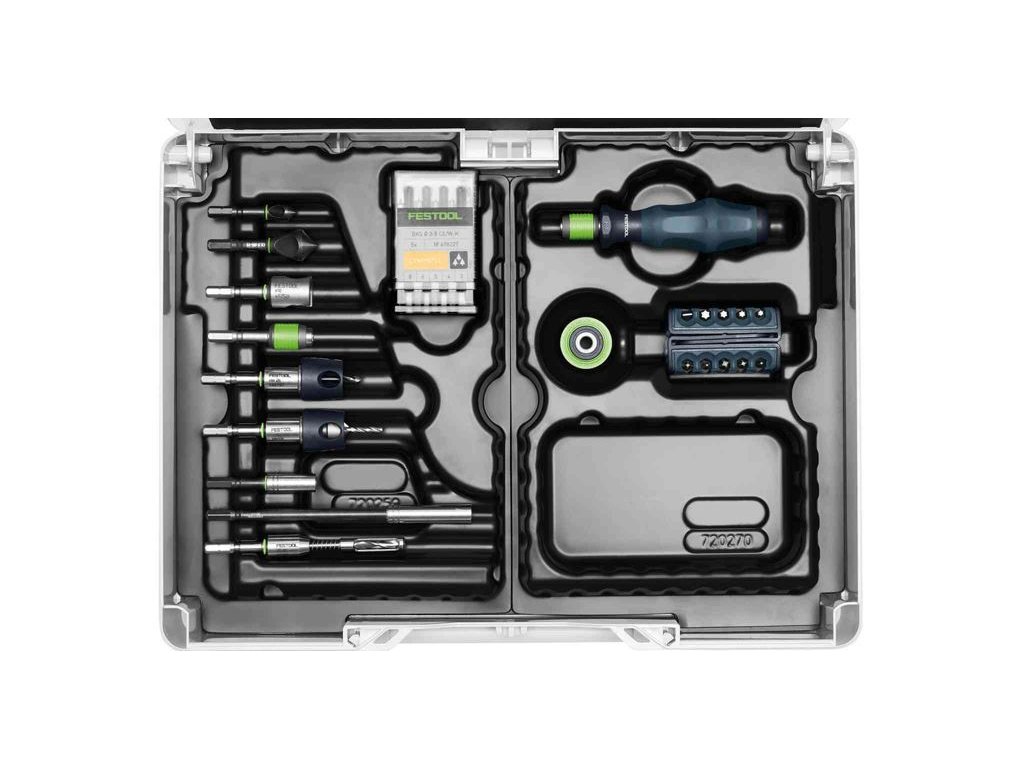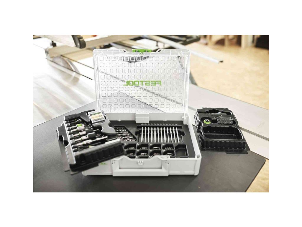 Rozsiahle 104-dielne príslušenstvo CENTROTEC v organizéri Systainer³ SYS3 ORG M 89. Montážny systainer CENTROTEC je perfektne vybavený pre širokú škálu vŕtacích, skrutkovacích a montážnych prác. Okrem rôznych skrutkovacích hrotov a vrtákov sú tu obsiahnuté aj strediace vrtáky CENTROTEC, záhlbník s hĺbkovým dorazom a mnoho iného. Vďaka upínaniu CENTROTEC sa dajú vŕtacie a skrutkovacie nástroje rýchlo a jednoducho upnúť do skľučovadla na nástroje CENTROTEC. To umožňuje rýchlu a pohodlnú výmenu nástrojov na vŕtanie a skrutkovanie.