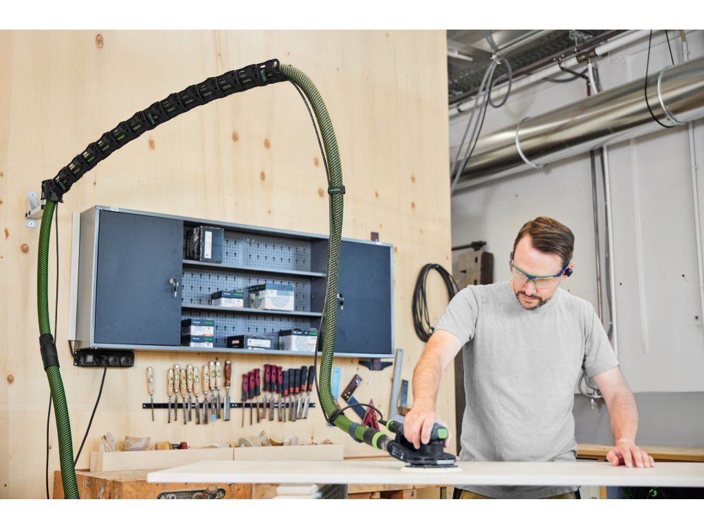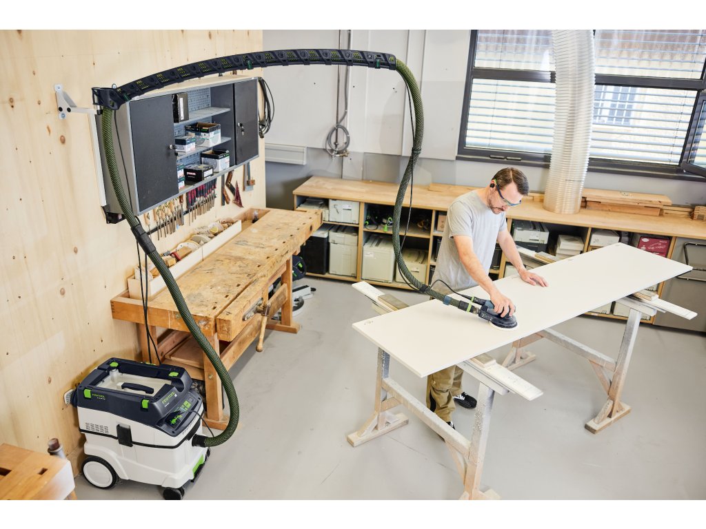 Otočné, zhora vedené odsávacie rameno zabezpečuje voľnú dráhu – žiadne zachytenie, žiadne zakopnutie. Jednoducho sa prispôsobuje až na dĺžku 1,5 m a dá sa bezpečne pripevniť na stenu. V kombinácii s vysávačmi a príslušenstvom, ako sú ventily v tvare Y alebo predradené odlučovače, sa vytvorí dokonale organizovaný systém na účinné odsávanie prachu – ideálny na dlhé brúsenie, rezanie alebo frézovanie. Na ergonomickú, čistú prácu s maximálnym komfortom.