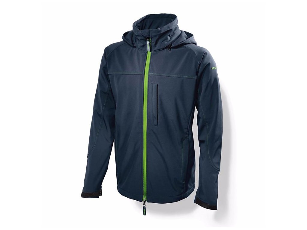 módne detaily: zelené ozdobné stehy a zelené 3D logo Festool na ľavom pleci