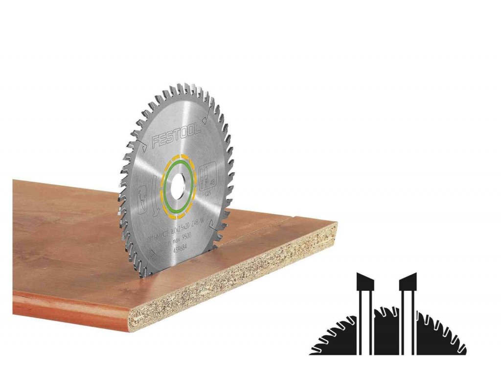 Optimálny pílový kotúč do okružnej píly pre jemné rezy. Pílový kotúč do okružnej píly s osadením zo spekaného karbidu so striedavými zubami (W) na čisté a hladké priečne rezy v masívnom dreve, v dyhovaných či povrchovo upravených doskách. Z kvalitnej ocele a zuby píly zo spekaného karbidu najjemnejšej zrnitosti.