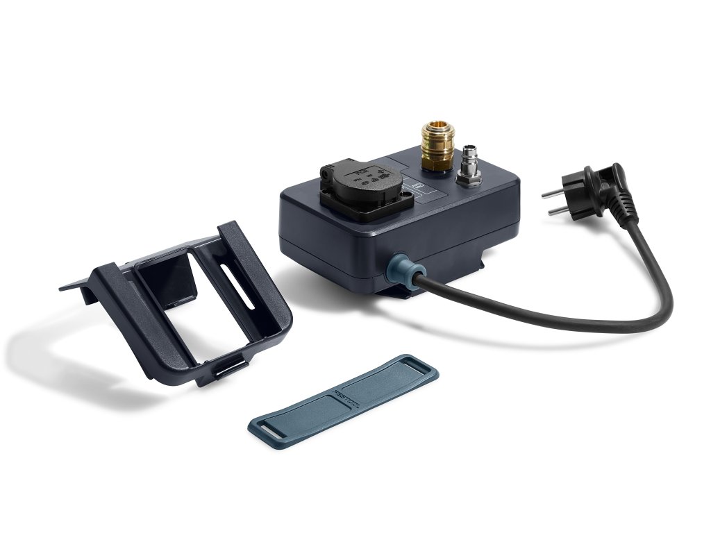 Pre pripojenie pneumatického a elektrického náradia na tvoj vysávač je vhodný tento samostatný pneumatický modul. Automatické zapínanie a vypínanie vysávač automaticky spustí, keď sa zapne brúska na stlačený vzduch. Sacia hadica a napájanie stlačeným vzduchom sú vedené jedným smerom – pre väčšiu bezpečnosť pri práci. Pomocou praktického držiaka možno modul ľahko upevniť a odobrať.