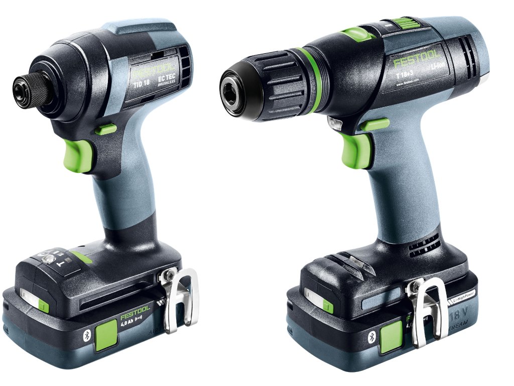 Super flexibilné pri vŕtaní a skrutkovaní alebo mimoriadne výkonné, odolné a vytrvalé. S akumulátorovým skrutkovačom T 18 +3 a akumulátorovým skrutkovačom s príklepom TID 18 ste vybavení pre každé vŕtanie a skrutkovanie. T18+3 s plne elektronickým nastavením krútiaceho momentu, systémom rýchlej výmeny CENTROTEC, uhlovým a excentrickým nadstavcom a hĺbkovým dorazom je super flexibilný a zabezpečuje rýchle prepínanie medzi vŕtaním a skrutkovaním. TID 18 je naproti tomu kompaktný svalovec s veľmi robustným príklepovým mechanizmom s mimoriadnou životnosťou. Okrem toho TID 18 s ¼“ upínaním nástroja točí len skrutku – a nie vaše zápästie: o to sa postará tangenciálny príklepový mechanizmus bez vyčerpávajúceho spätného krútiaceho momentu. Obidve presvedčia bezuhlíkovým a preto bezúdržbovým motorom EC-TEC – ktorý v kombinácii s akumulátorovou súpravou zabezpečuje maximálnu výdrž. Aby bol deň bez starostí, akumulátorový skrutkovač a akumulátor sú kompletne poistené službou Festool Service.
