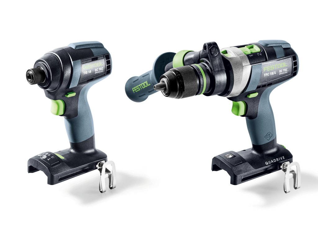 Čistý výkon pre každé použitie spolu s nezničiteľnou odolnosťou a výdržou. S akumulátorovým príklepovým vŕtacím skrutkovačom TPC 18/4 a akumulátorovým rázovým uťahovačom TID 18 ste vybavení pre každé vŕtanie a skrutkovanie. TPC 18/4 presvedčí najlepšou koncepciou spínania, s akou ste kedykoľvek pracovali. Množstvo nadstavcov v kombinácii s perfektne prispôsobeným príslušenstvom robí z QUADRIVE neporaziteľný príklepový vŕtací skrutkovač na najrôznejšie použitie. A nebezpečné vykrútenie zápästia pri náhlom zablokovaní pracovného nástroja? Inteligentná funkcia KickbackStop minimalizuje riziko, že k nemu dôjde. TID 18 je naproti tomu kompaktný svalovec s veľmi robustným príklepovým mechanizmom s mimoriadnou životnosťou. Okrem toho TID 18 s ¼“ upínaním nástroja točí len skrutku – a nie vaše zápästie: o to sa postará tangenciálny príklepový mechanizmus bez vyčerpávajúceho spätného krútiaceho momentu. Obidve presvedčia bezuhlíkovým a preto bezúdržbovým motorom EC-TEC – ktorý v kombinácii s akumulátorovou súpravou zabezpečuje maximálnu výdrž. Aby bol deň bez starostí, akumulátorový skrutkovač a akumulátor sú kompletne poistené službou Festool Service.