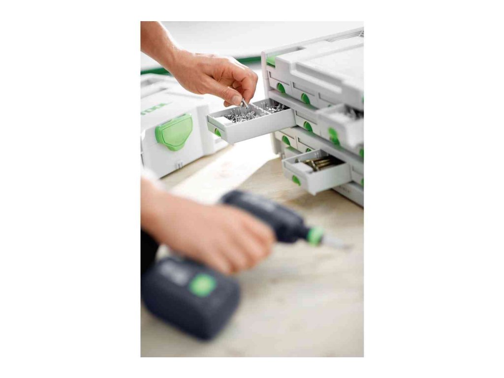Pre zmenu sú tu zásuvky: Aby ste mali malé diely ako klince, rozperné kolíky alebo skrutky usporiadané rovnako prehľadne ako svoje ručné náradie. Tak prestavuje SORTAINER až s 12 zásuvkami ideálny doplnok k programu Systainer.