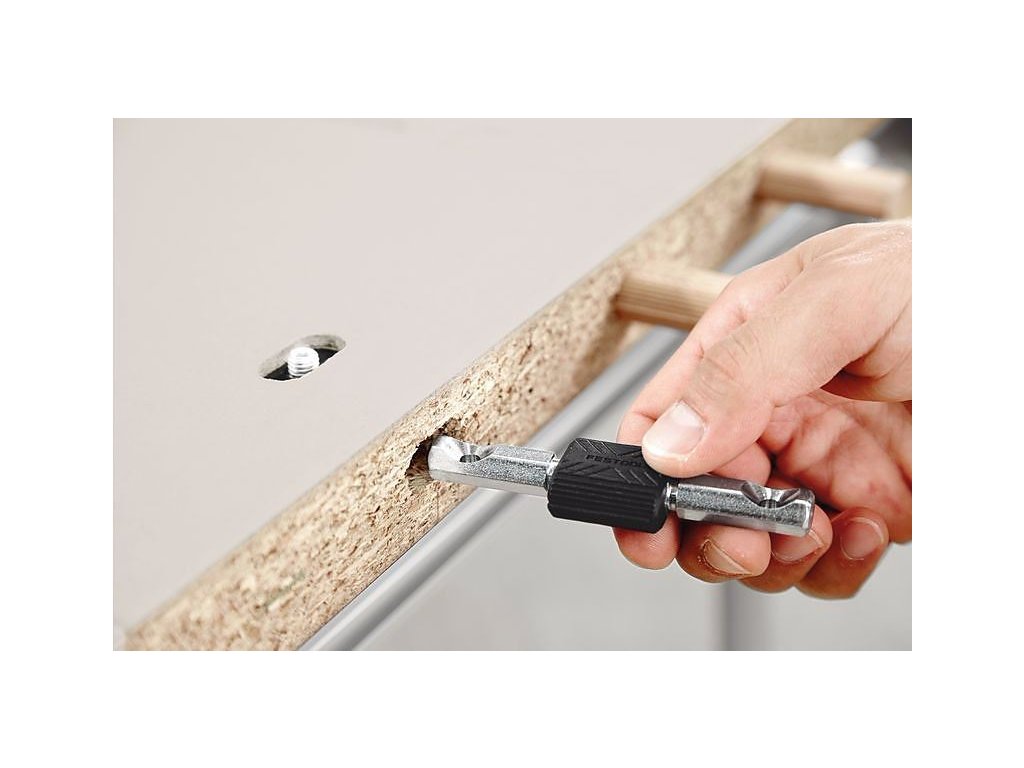 Na vytváranie rozpojiteľných plošných spojov pri výrobe nábytku, ako napr. kuchynských pracovných dosiek, lavičiek atď.