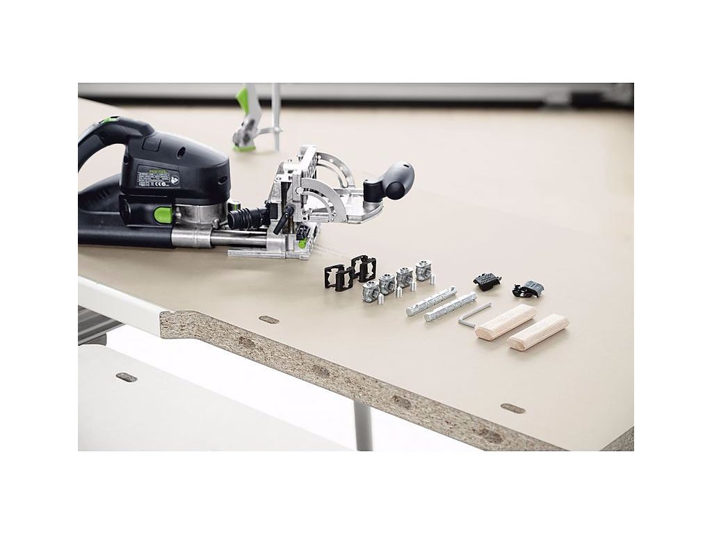 Systém rohových a plošných spojok pre kolíkovaciu frézu DOMINO XL DF 700 umožňuje stabilné, znova rozpojiteľné spojenia materiálu od hrúbky 30 mm