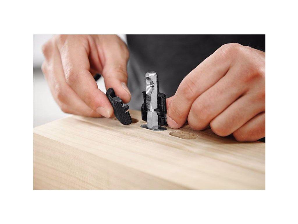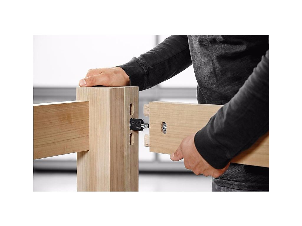 Systém rohových a plošných spojok pre kolíkovaciu frézu DOMINO XL DF 700 umožňuje stabilné, znova rozpojiteľné spojenia materiálu od hrúbky 30 mm