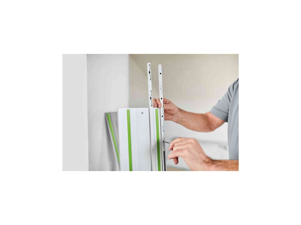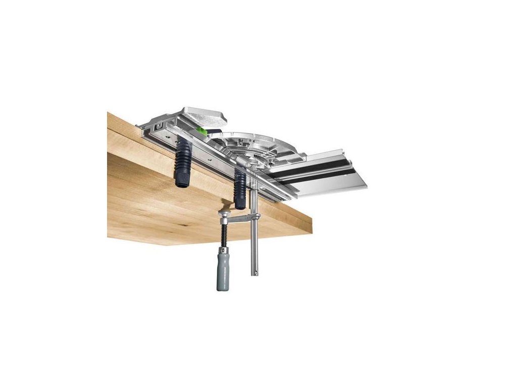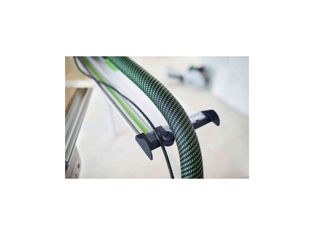 Všetko, čo môže vodiacu lištu ešte vylepšiť, v jednom kontajneri Systainer³: skrutkovacie svorky, kombinovaný uhlový doraz, nábehová hrana, ochrana proti spájacie prvky a triesková zábrana.