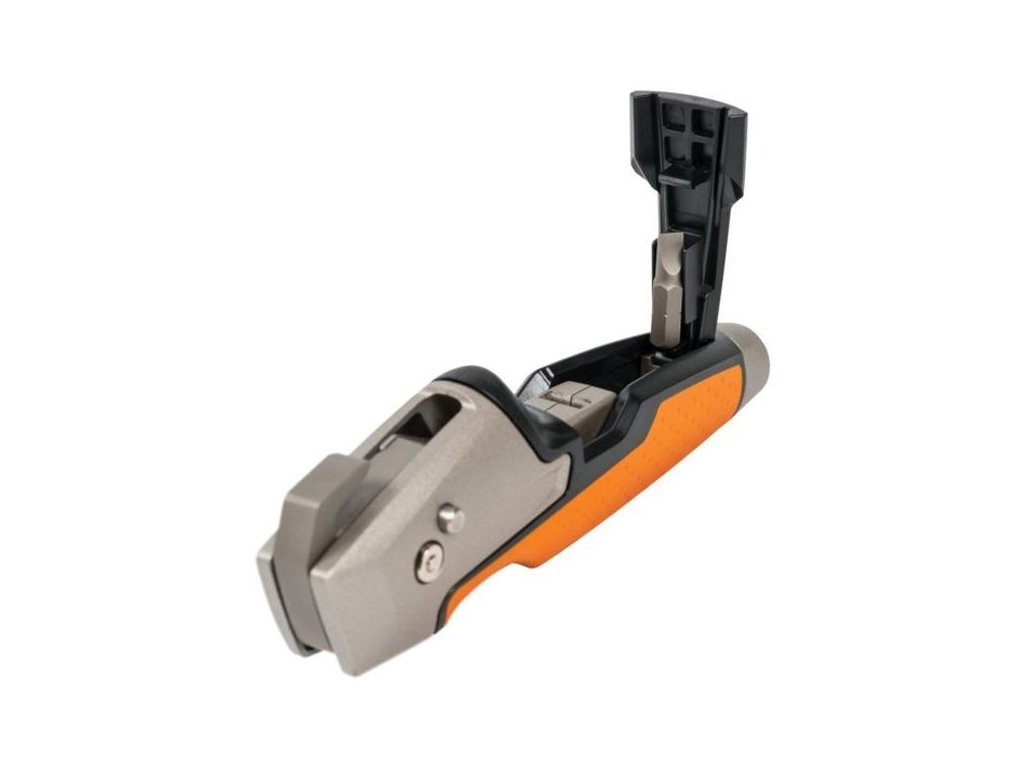 Zakončenie z tvrdeného kovu sa hodí pri zatváraní plechoviek a príležitostnom pribíjaní klincov. Nôž obsahuje zásobník s kapacitou 2 ks čepelí. Balenie obsahuje jednu univerzálnu čepeľ CarbonMax, ktorá vydrží 24× dlhšie než bežné univerzálne čepele.