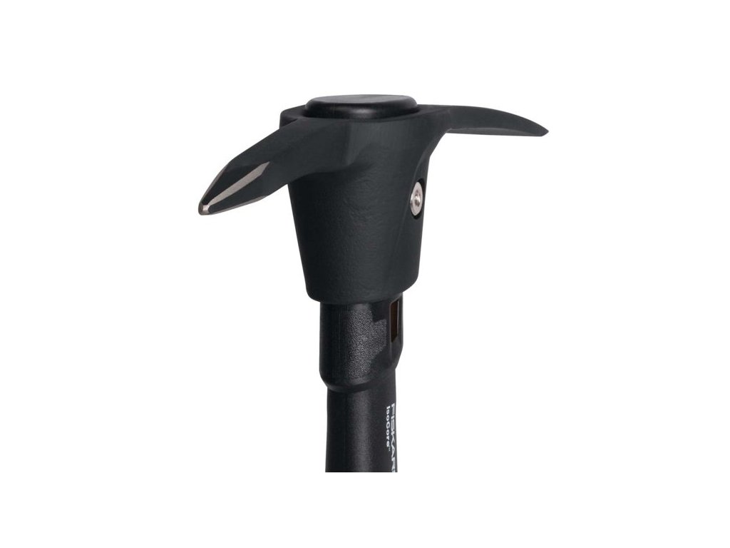 - Hlava je vybavená zberným koncom na prechádzanie po tvrdých povrchoch a motykovým koncom na použitie motyky v tvrdej pôde