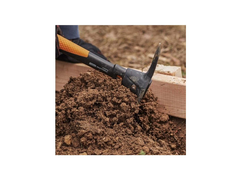 - Fiskars Pro IsoCore ™ Krompáč S so systémom IsoCore Shock Control System prenáša o 50% menej nárazov a vibrácií ako rukoväti spracované z dreva