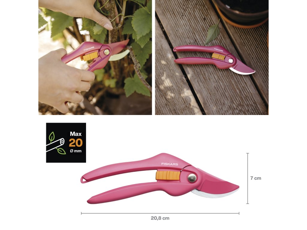 FISKARS Záhradné nožnice dvojčepeľové RUBY Inspiration, ružové 1003657
