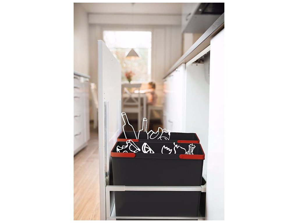 Systém EASYSORT poskytuje pohodlné triedenie odpadu. Koše sú vyrobené z recyklovaného antiseptického materiálu, ktorý znižuje výskyt baktérií až o 99 %.