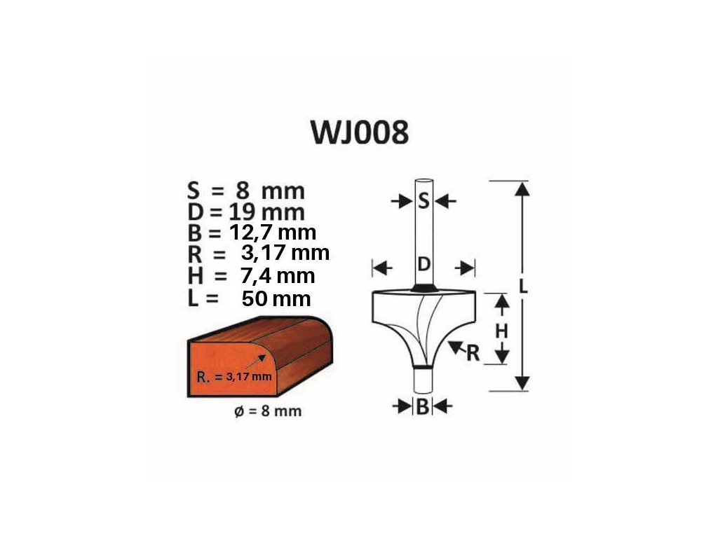 Fréza do dreva D19/H7,4/L50/R3,17/B12,7/S8 WJ008