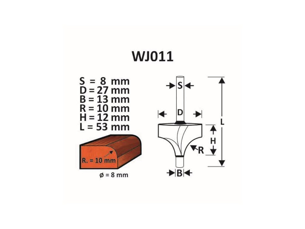 Fréza do dreva D27/H12/L53/R10,B13/S8 WJ011