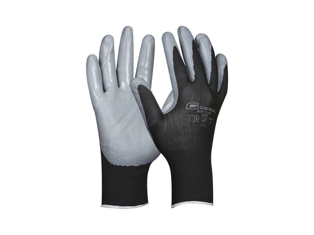 Sivý nitrilový povlak na bezšvovej, jemnej polyesterovej pletenine, anatomicky tvarované, vysoká istota pri uchopení a dobrý hmat. Pružný nitrilový povlak je olejofóbny.