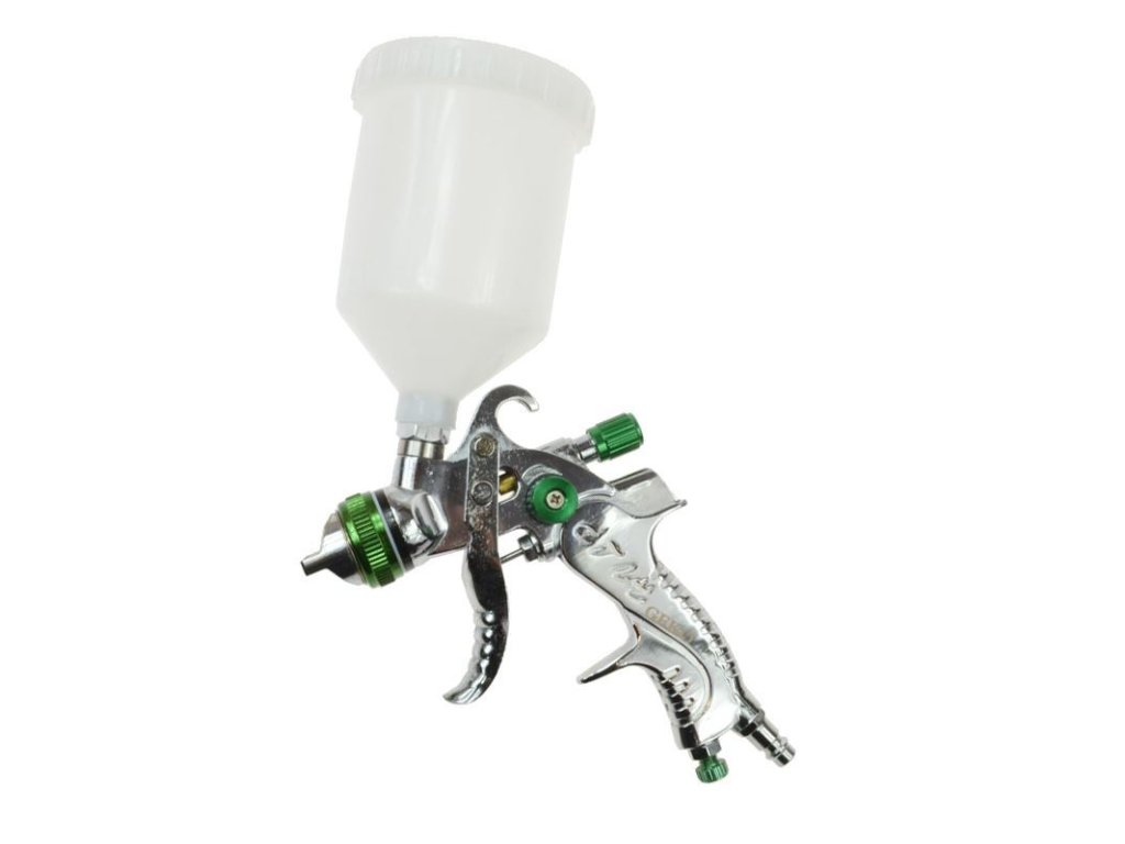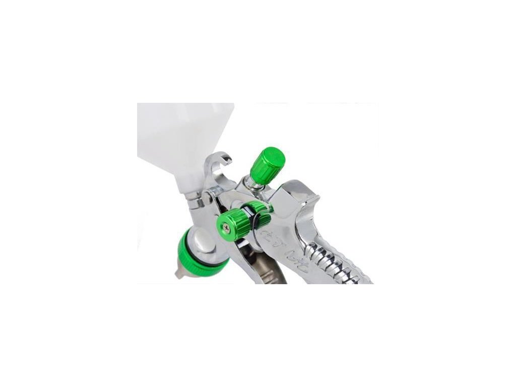 Použitá technológia HVLP (vysoká hlasitosť nízkeho tlaku) umožňuje získať veľký objem injekčnej farby s nízkym tlakom vzduchu, ktorý tlačí farbu cez trysku. Výsledkom je, že spolu s vyfukovaným vzduchom sa spotrebuje menej farby so širším dopadom na lakovaný povrch, čo znižuje spotrebu farby.