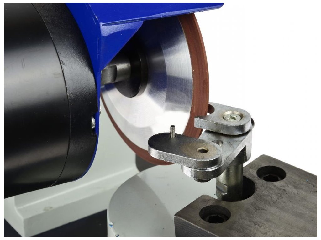 Ostrička pílových kotúčov vybavená diamantovým brúsnym kotúčom s priemerom 125 mm. Vhodná na ostrenie pílových kotúčov s priemerom od 80 do 700 mm. Nastavenie uhla sklonu kotúča a natavenie pílového kotúča umožňuje ostrenie rôznych typov pílových kotúčov.
