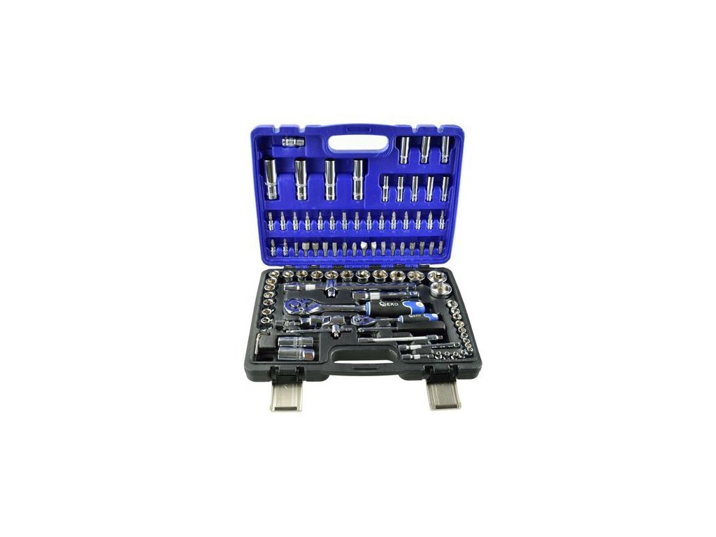 G10100 Gola sada GEKO 1/2 "a 1/4" 94 ks. Univerzálna súprava určená pre servis, služby, ako aj pre domáce použitie. Kľúče sú vyrobené z vysoko kvalitnej chróm-vanádiovej ocele..