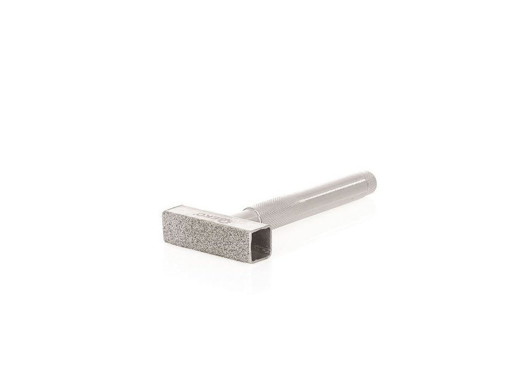 Výborný nástroj na zarovnávanie hrán a plôch brúsnych kotúčov. Rozmery pracovnej plochy : 45 x13 mm; dĺžka nástroja 110 mm. Vrúbkovaná rukoväť na pevné uchytenie.