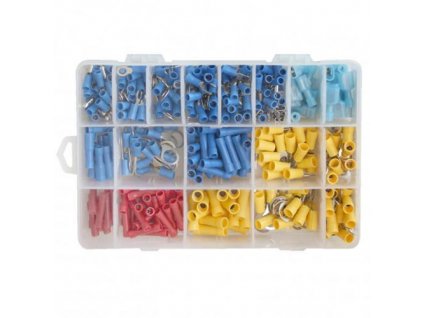 Sada izolovaných objímok na ukončenie káblov. Krimpovacie objímky sú obzvlášť užitočné na vytváranie káblových koncoviek na viacžilových kábloch. Použitie káblových objímok zaručuje, že všetky uvoľnené vodiče v kábloch pevne držia na jednom mieste. To výrazne znižuje možnosť skratu a výrazne uľahčuje inštaláciu takéhoto kábla do svorkovnice.