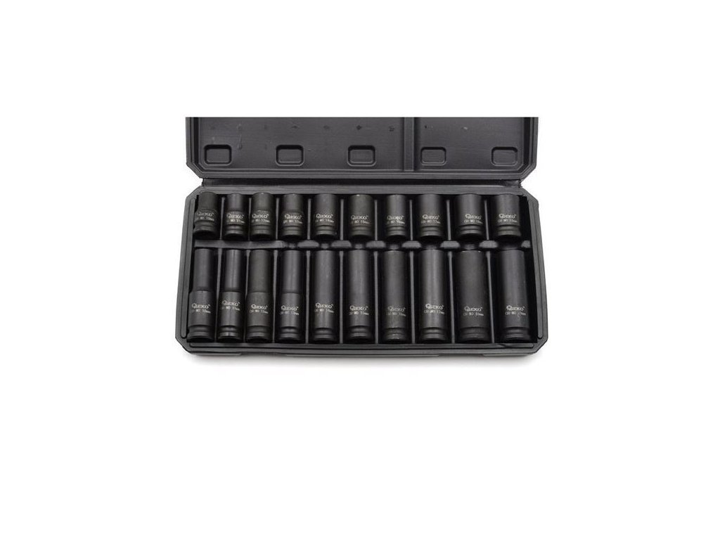 Sada dlhých a krátkych 1/2" priemyslových hlavíc vo veľkostiach od 10 do 19 mm. Nástrčné hlavice sú vyrobené z vystuženej chróm-molybdénovej ocele. Pridanie molybdénu zabraňuje deformácii, čo zvyšuje všeobecnú odolnosť tohto typu ocele proti korózii vo vlhkom a kyslom prostredií.