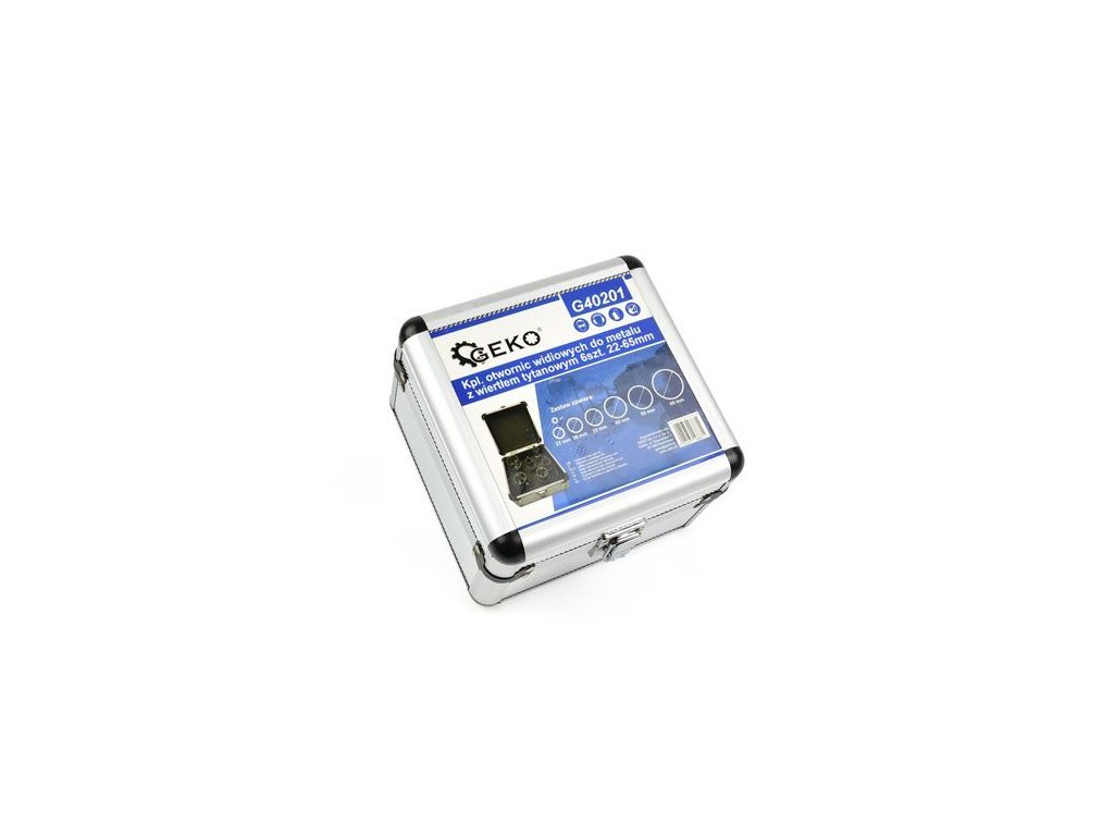 GEKO Sada vídiových koruniek do kovu, 22-65 mm, 6-dielna, hliníkový kufrík G40201