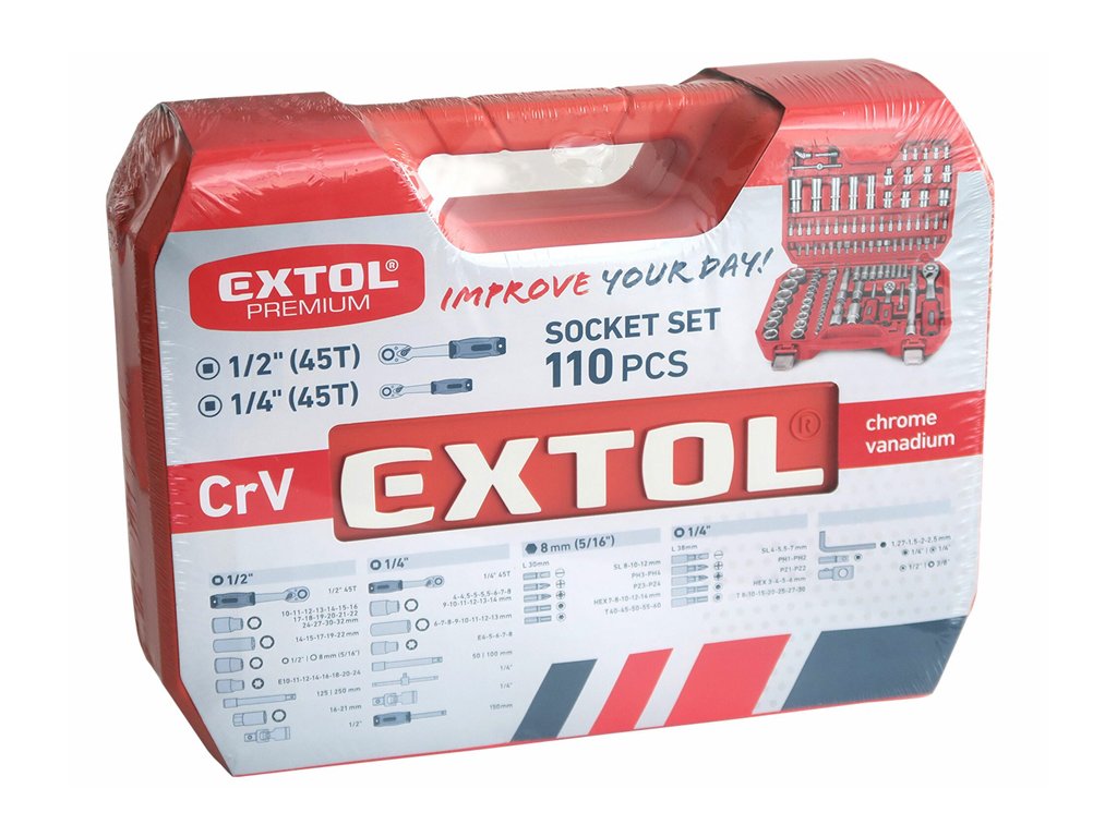 EXTOL Gola sada 110-dielna, 1/4″, 1/2″ 8818338