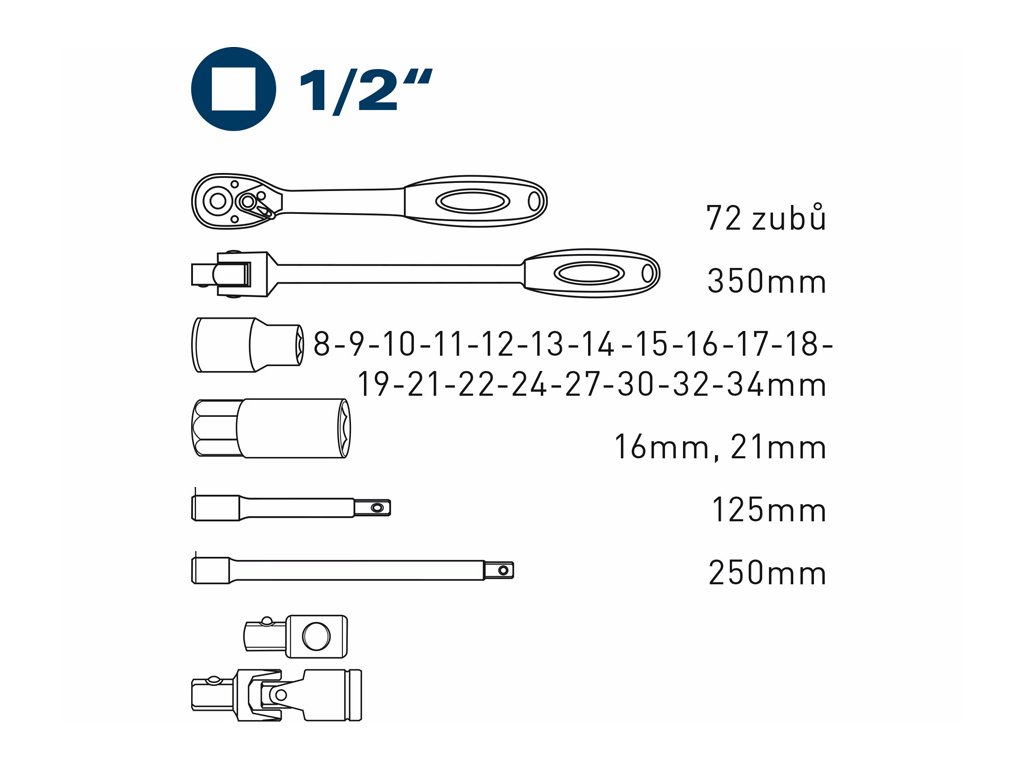 1/2": 8-9-10-11-12-13-14-15-16-17-18-19-21-22-24-27-30-32-34mm |