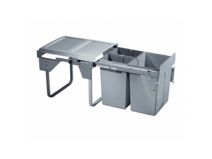Odpadkový kôš pre kuchynské linky a kancelárie. Kovanie výsuv s doťahom a dotlmením, Montáž na dvierka. Možnosť montáže pod drez. Použitie do skrinky šírky 450 mm. Objem 2 x 15 l.