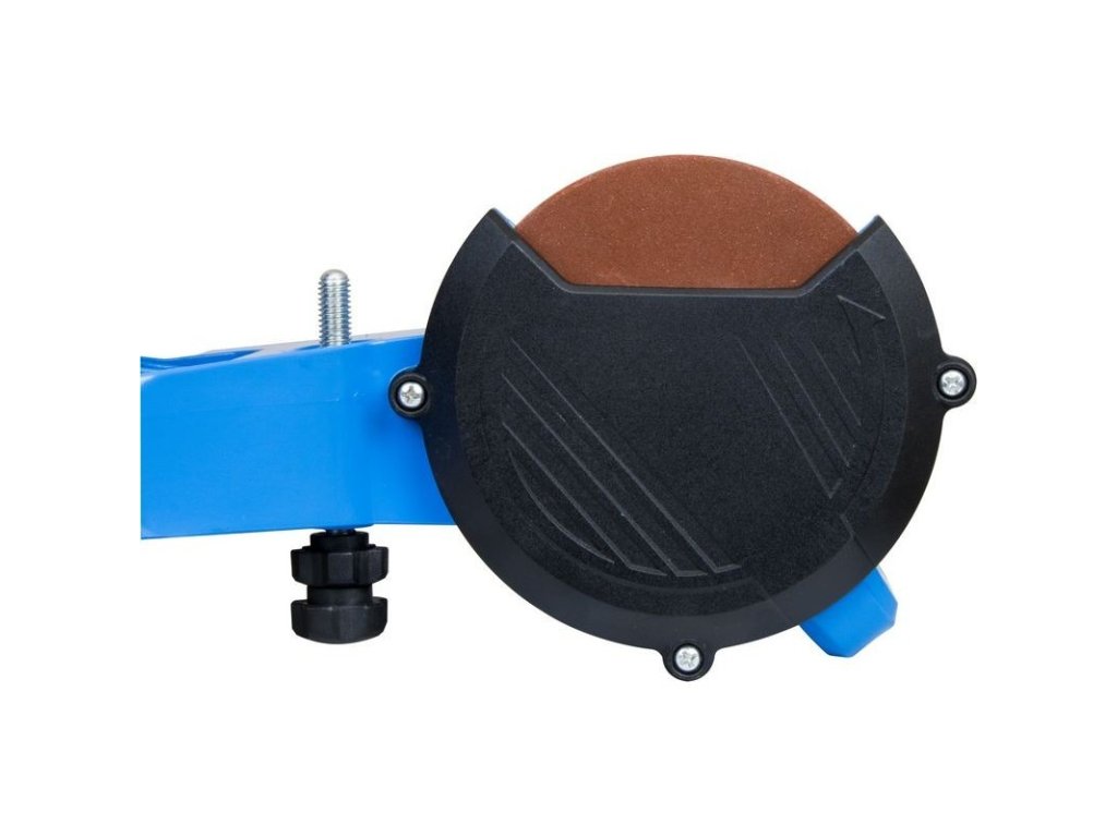 Elektrická brúska na brúsenie reťazí reťazových píl s uhlom ostrenia 2 x 35°, uhol nastaviteľný pomocou ručného kolieska. Nábehový uhol ostria 60° pevný, obmedzenie hĺbky brúsenia, vodiaca lišta reťaze s variabilne nastaviteľným dorazom, upnutie reťaze pomocou napínacej páky. Na stacionárnu montáž. Na ostrenie všetkých bežných typov reťazí (nábehový uhol ostria 60°). Vrátane brúsneho kotúča 108 x 23 x 3,2 mm.