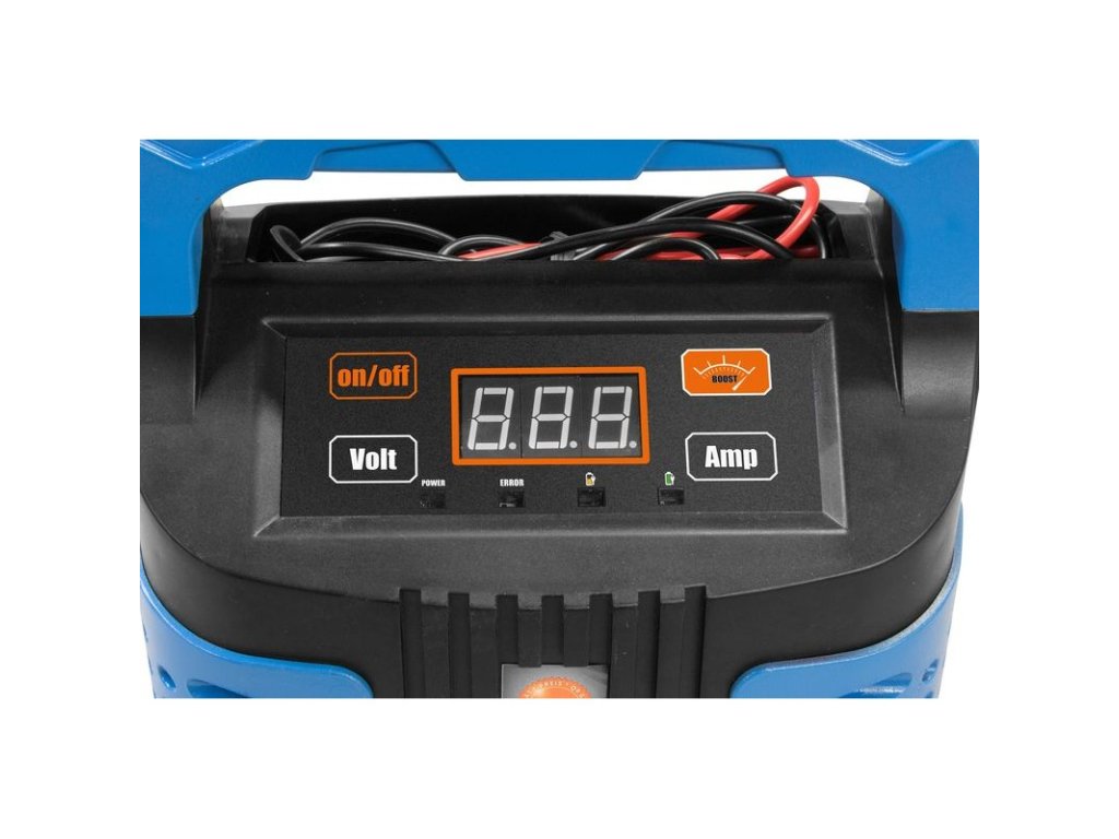 Invertorová technológia pre efektívne využitie energie. Procesorom riadená technológia inteligentného nabíjania, šesťstupňový proces nabíjania šetriaci batériu. Pre všetky bežné 6 V a 12 V batérie. Funkcia BOOST 10 A-300 sekúnd na pomoc pri štartovaní. Možnosť priameho nabíjania batérie pripojenej vo vozidle. Automatické vypnutie nabíjania / prechod do režimu udržiavacieho nabíjania. Regulácia teploty počas nabíjania, ochrana proti prepólovaniu a skratu, LED displej, plne izolované svorky batérie. Vhodné pre batérie PB - olovená batéria (aj MF), GEL - gélová batéria, AGM - prietoková batéria (štart-stop automat.), WET - mokrá batéria.