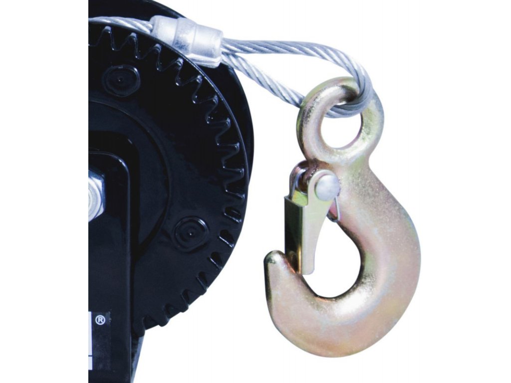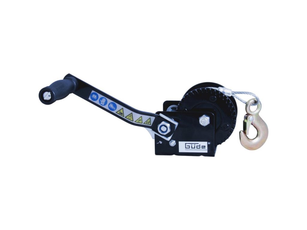 Ručný lanový navijak na vodorovné ťahanie bremien. Vhodný na použitie na miestach bez elektriny, napríklad v garáži, na záhrade, na prívesoch alebo v lesníctve a poľnohospodárstve. Zdvíhací hák s otvorom v tvare slzy, blokovacia páka, ručná kľuka s mäkkým úchopom. Základová doska s otvormi pre pevnú montáž na vhodných oporných bodoch, oceľové lano.