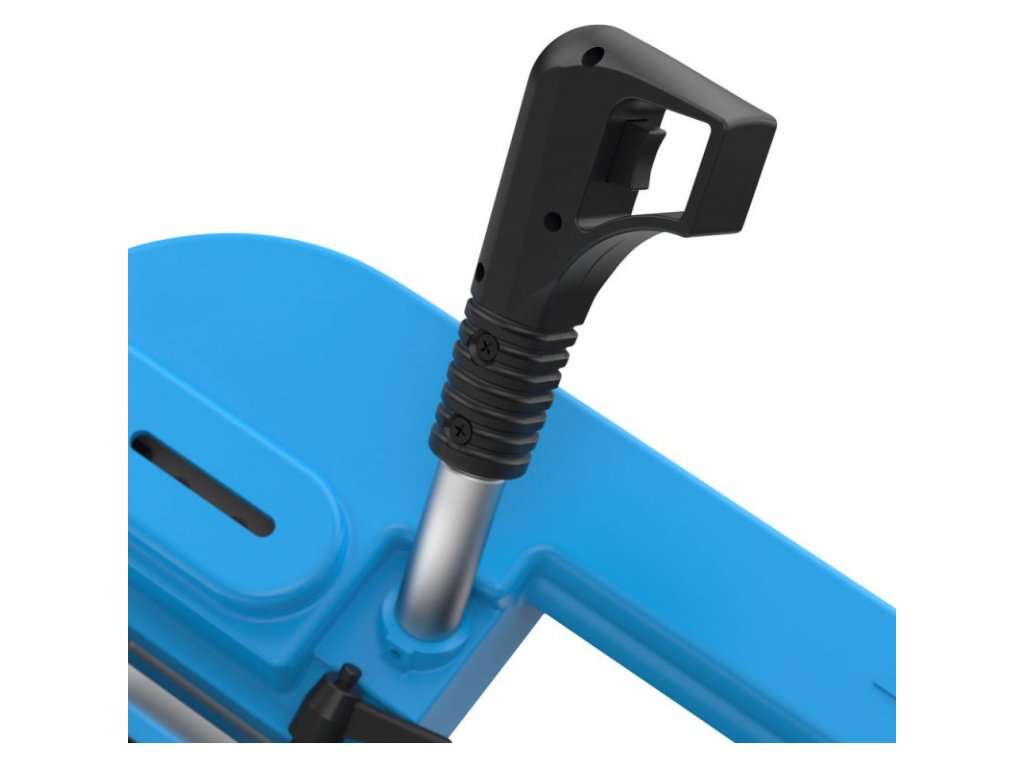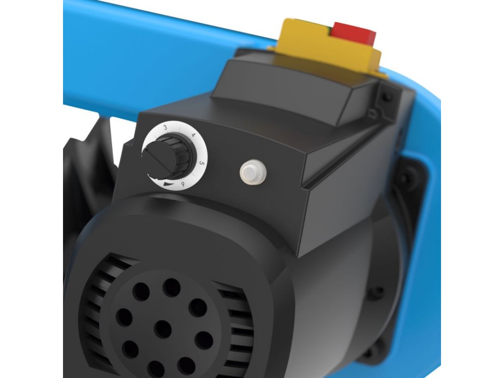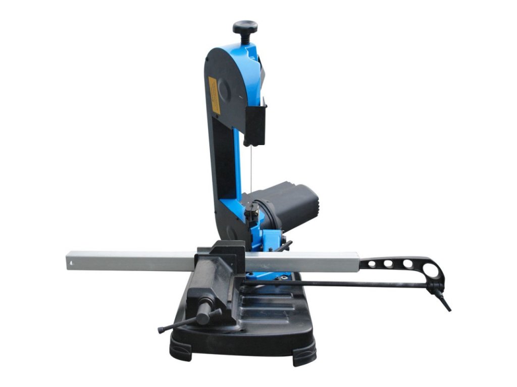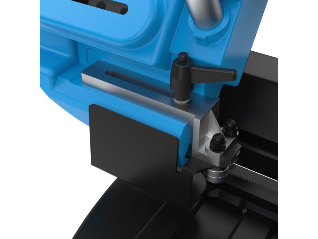 Pásová píla so stabilnou konštrukciou odolnou voči skrúteniu. Presné vedenie pásky s guľôčkovým ložiskom, otočná hlava stroja. Uhlové rezy od 0° - 60°. Potenciometer pre nastavenie variabilných otáčok pílového kotúča. Zarážka materiálu, zverák, stupňová stupnica 0° - 60°. Bezpečnosť pri preprave, pílový pás.