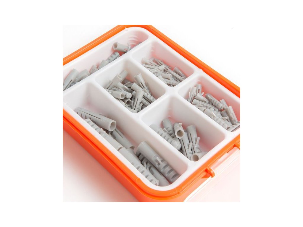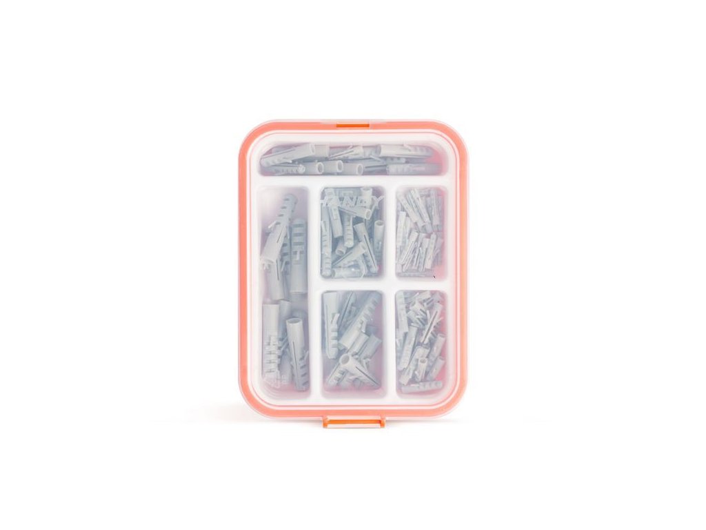 Sada plastových hmoždiniek pre betónové tehlové steny s najbežnejšími rozmermi. Nech sa jedná o akýkoľvek typ pripevnenia v tejto sade určite nájdete potrebný rozmer.Krabička s priehľadným vekom zabezpečí výbornú prehľadnosť.