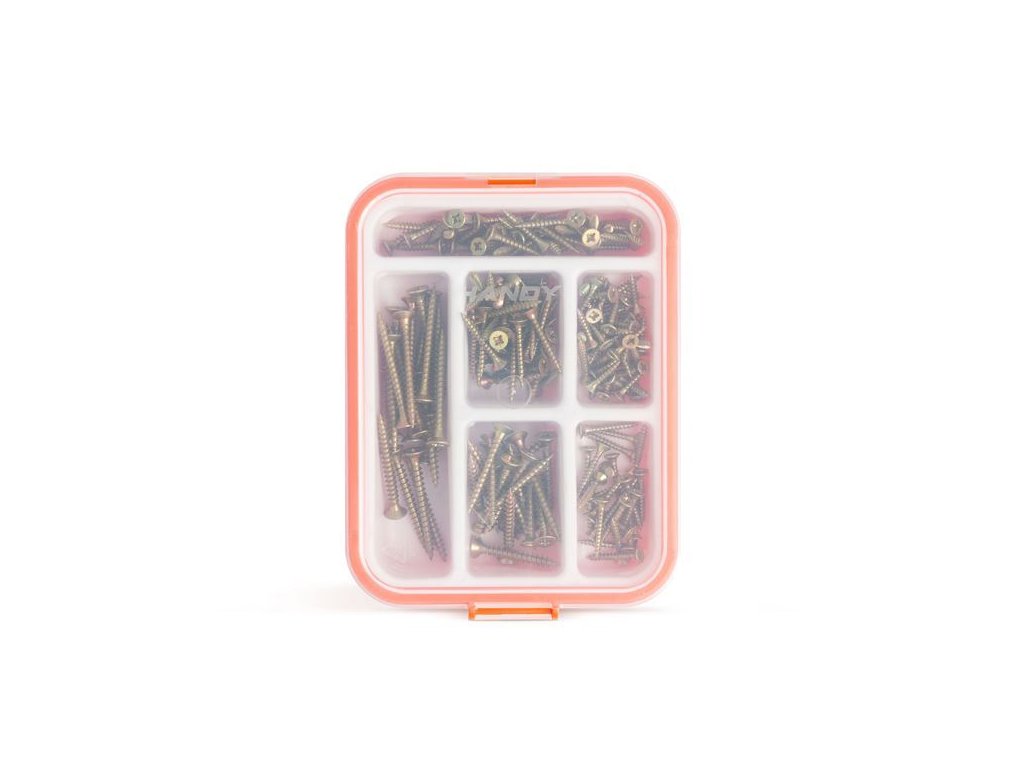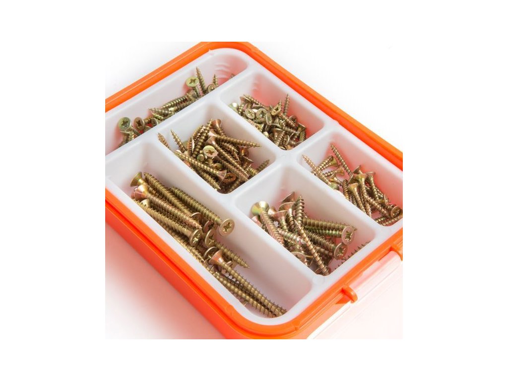 Tiež ste domácim majstrom?Ale len radi vykonávate práce okolo domu?Táto sada skrutiek Vás určite nesklame.Každý zo všeobecných rozmerov nájdete v sade.Môže sa použiť na upevnenie dreva, ale môže sa použiť aj na pripevnenie obrázkov, políc, konzol.Praktické priehľadné veko zabezpečí výbornú prehľadnosť.