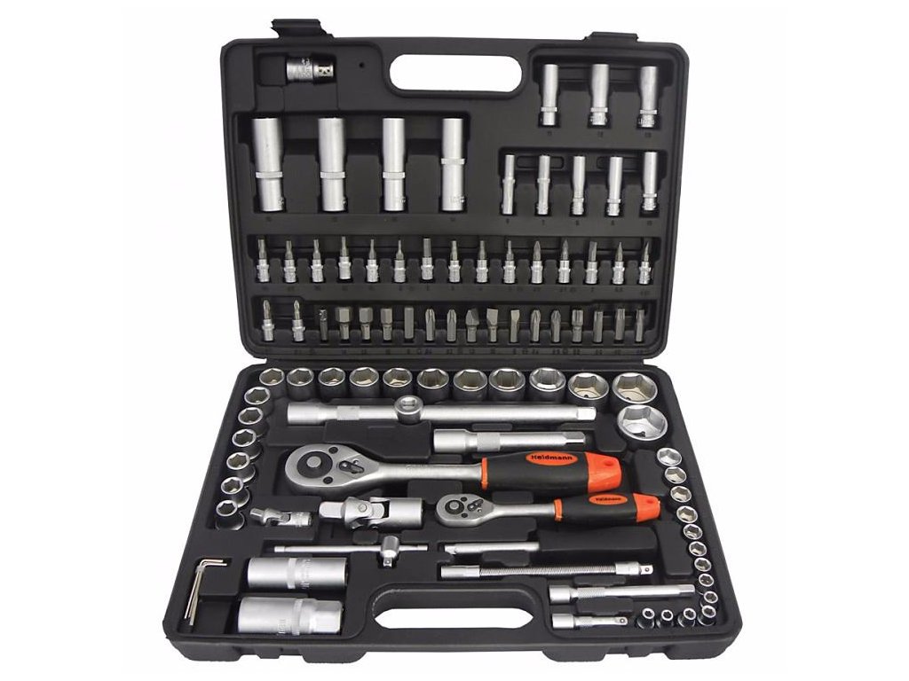 Gola sada 1/2 "a 1/4", 94 dielna. Univerzálna súprava určená pre servis, služby, ako aj pre domáce použitie. V plastovom kufri, HEIDMAN Kľúče sú vyrobené z vysoko kvalitnej chróm-vanádiovej ocele.