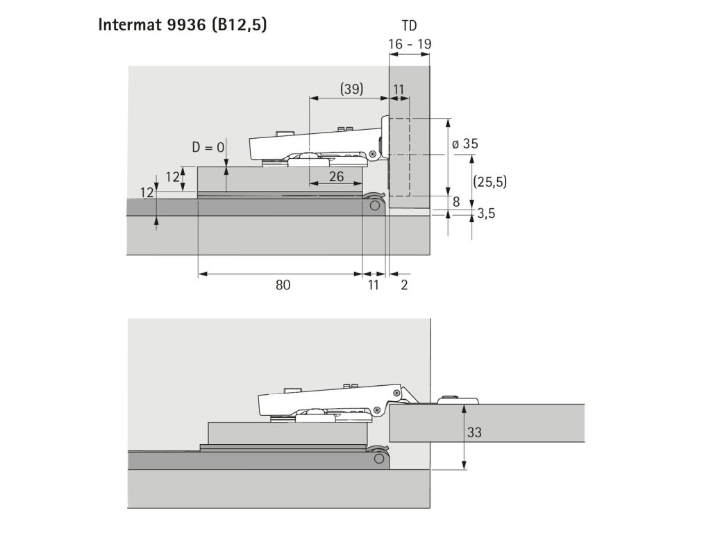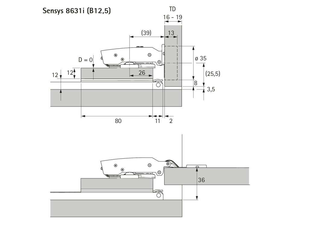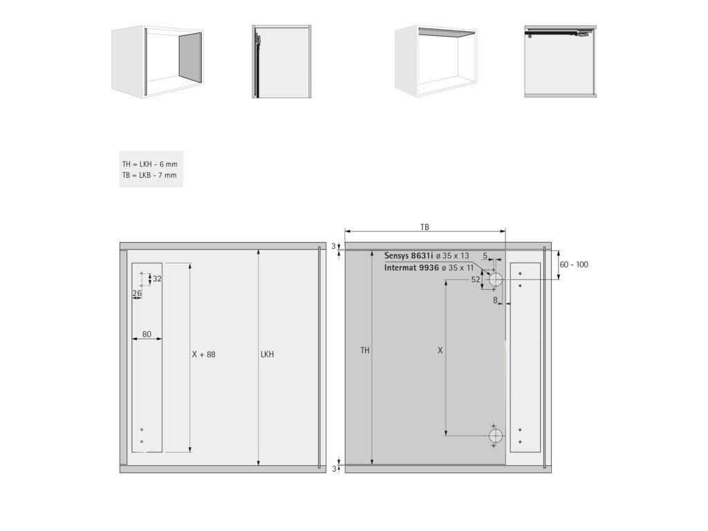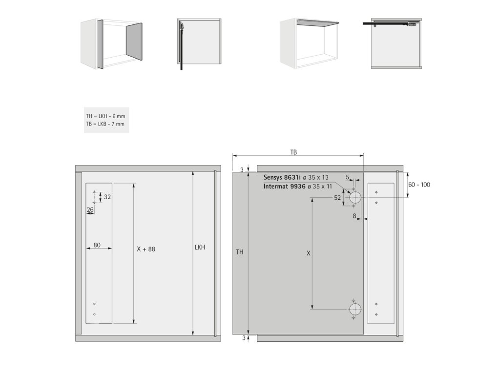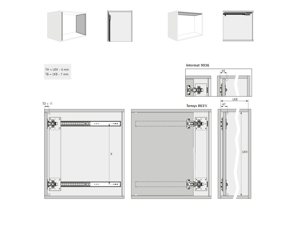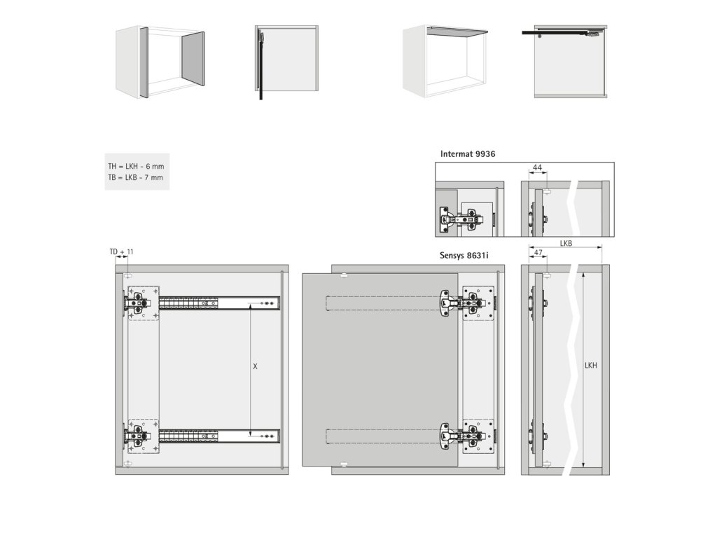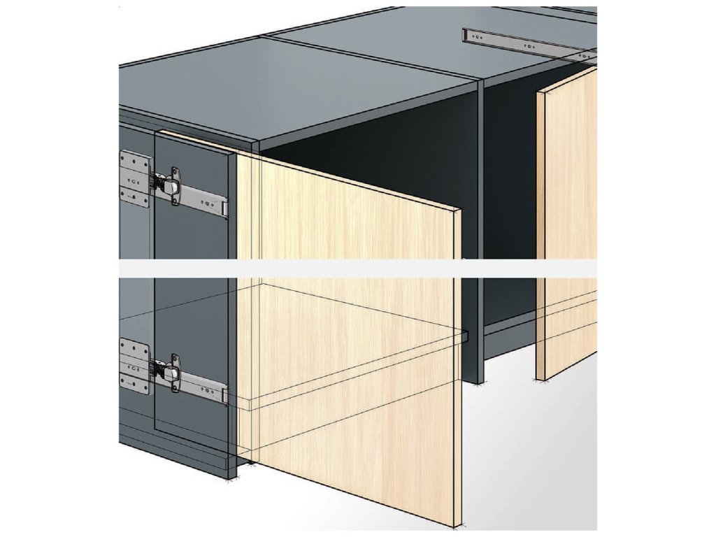 Toto je sada pre jedno krídlo dverí, ktorá obsahuje 2 guličkové výsuvy. Závesy pre dvere s veľkou hrúbkou a podložky D=0 sa musia objednať samostatne.