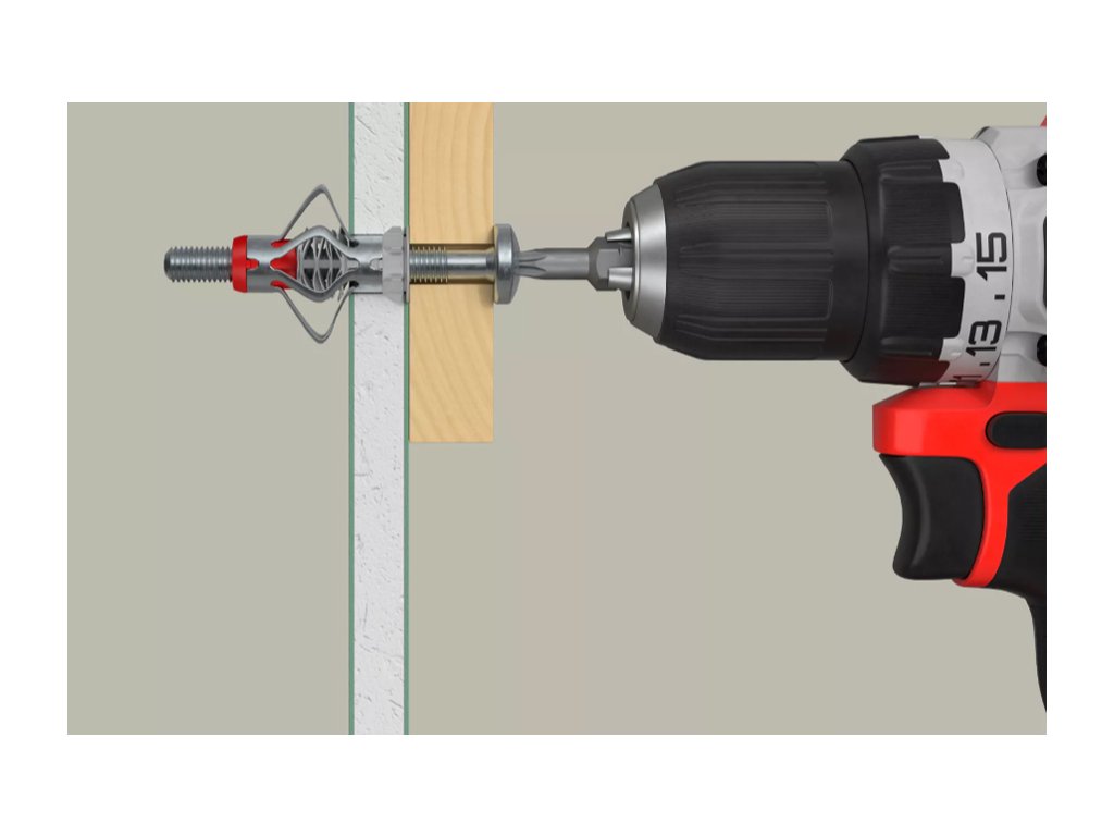 - Až o 50 % rýchlejšia inštalácia ako pri porovnateľných hmoždinkách pre doskové materiály